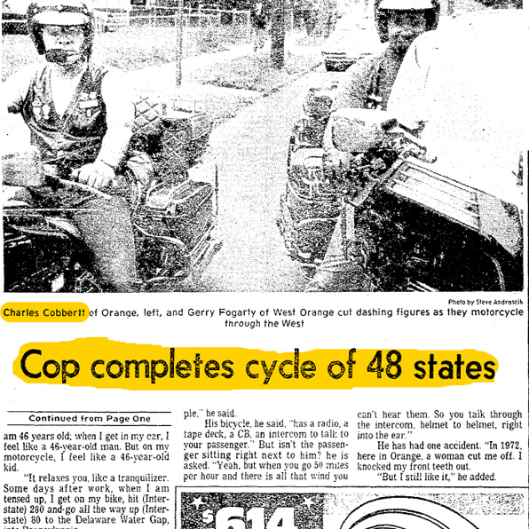 In 1977, Orange Police Lt. Charles Cobbertt set a goal of riding his motorcycle in each of the 48 contiguous United States. This year, he completed the project.