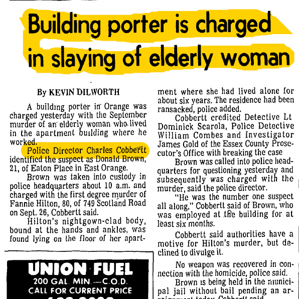 Police Director Charles Cobbertt identified the suspect as Donald Brown, 21, of Eaton Place in East Orange.