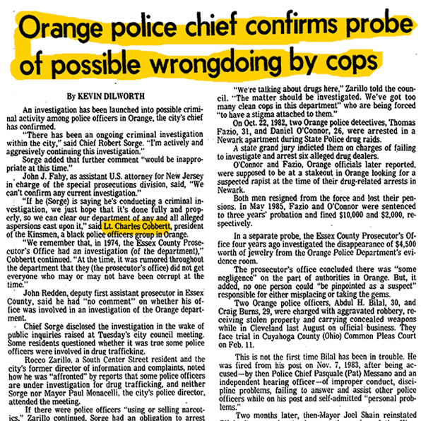 "If he (Sorge) is saying he's conducting a criminal investigation, we just hope that it's done fully and properly, so we can clear our department of any and all alleged of aspersions cast upon it." said Lt. Charles Cobbertt, president of the Kinsmen, a black police officers group in Orange.