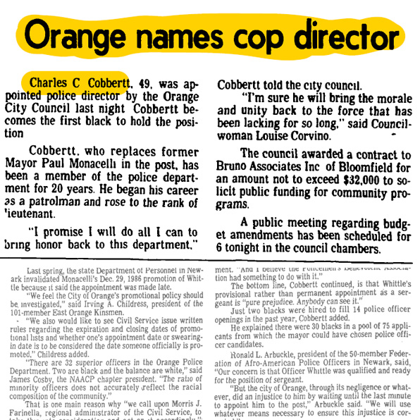Charles C. Cobbertt, 49, was appointed police director by the Orange City Council last night. Cobbertt becomes the first black to hold the position.