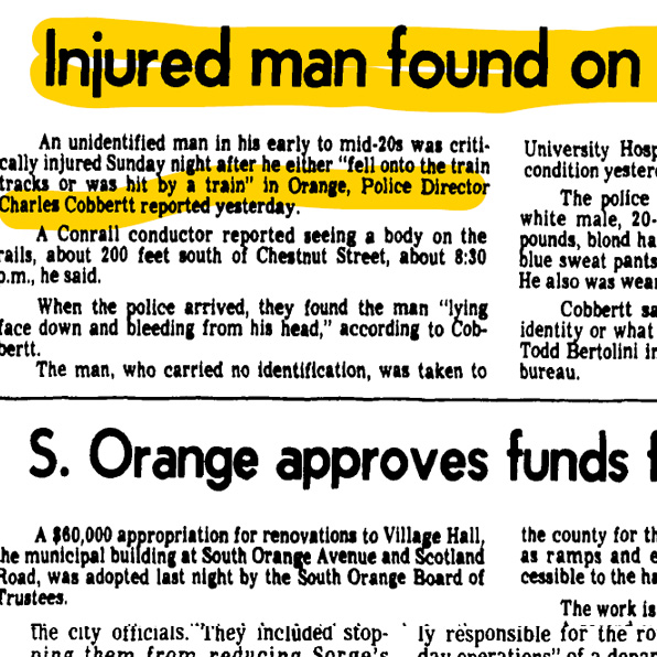 Cobbertt said anyone with information on the man's identity or what happened to him is asked to call Detective Todd Bertolini in the Orange Police Department's detective bureau.
