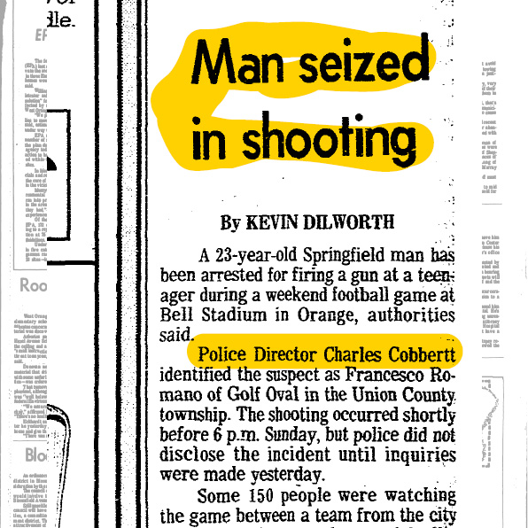 Some 150 people were watching the game between a team from the city and players from another municipality when Romano fired three shots from a .25-caliber gun at a 17-year-old city teenager, Cobbertt said.